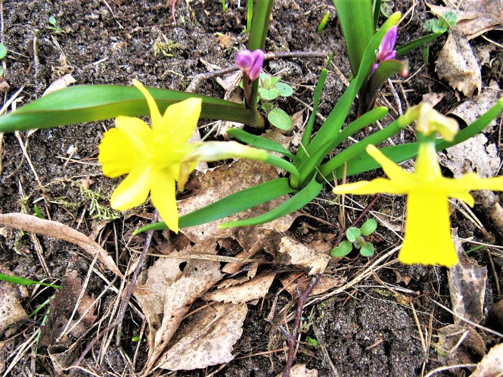 CEBULICZKI ODWAŻNIE SIĘ PRZEBIŁY PRZEZ STARE LIŚCIE – same się rozchodzą po działce.