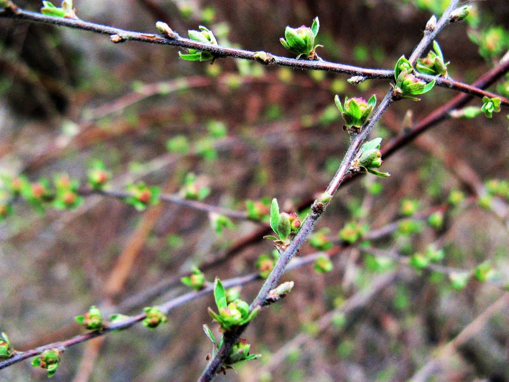 KRZAK TAWUŁY NIEŚMIAŁO WYPUŚCIŁ LISTKI Z RÓŻEM, A KWITNIE BIELĄ.